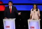 Haley, DeSantis debate while Trump appears at town...