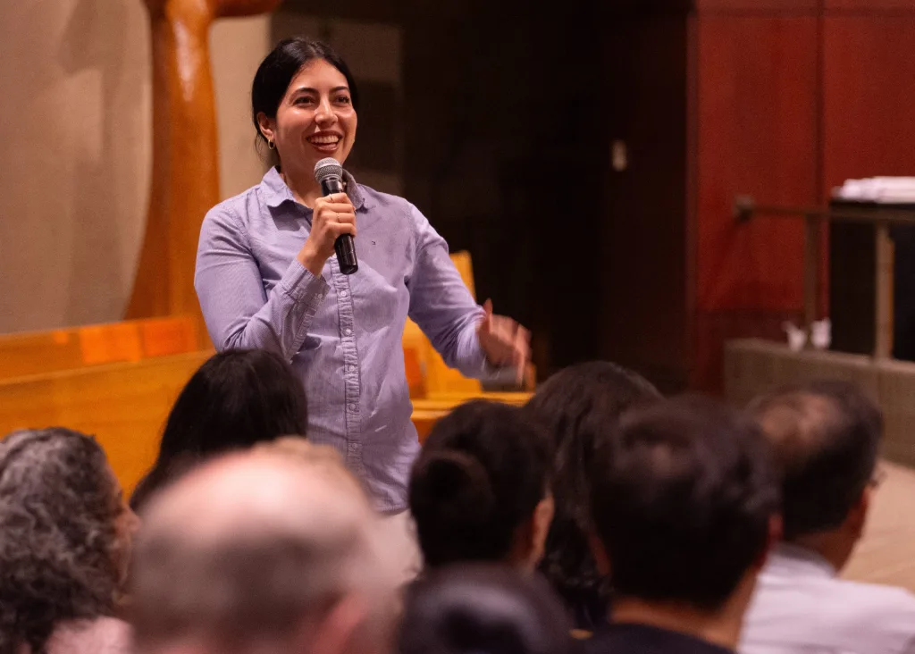 Missionary Emily Masferrer told the congregation how she made the decision to put Jesus at the center of her life after being confronted with her own mortality.