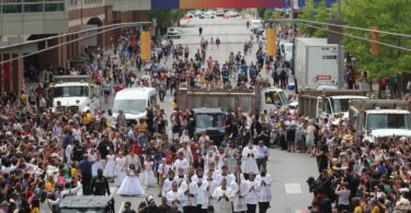 Chicagoans celebrate one of their own, with Mass and festivities...