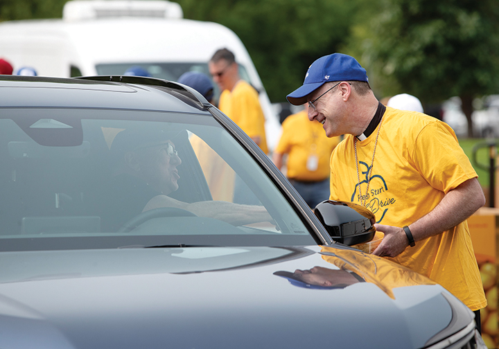 Archbishop Shawn McKnight partnered with Catholic Charities for the “Fresh Start” food drive, where community members showed their support by donating 3,086 pounds of food valued at nearly $6,000.