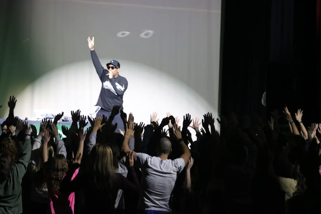 A few times, DJ Code and Melendrez invited audience members onstage. Later, audience members were invited to share their own testimonies after Melendrez shared how his life changed at age 15 when he attended a retreat. Now, he tries to honor God in all he does.