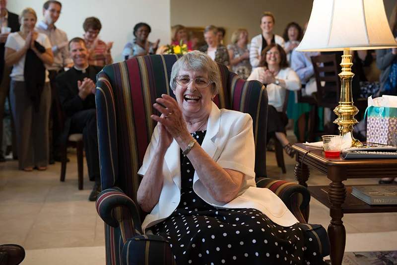 LEAVEN PHOTO BY JOE BOLLIG Chancery employees turned out in force to honor Sister Susan Pryor, SCL, who had greeted them at the door of the archbishop’s residence for almost two decades now. Knee replacement surgery has caused her to consider other options — which might include returning to her first love, teaching.