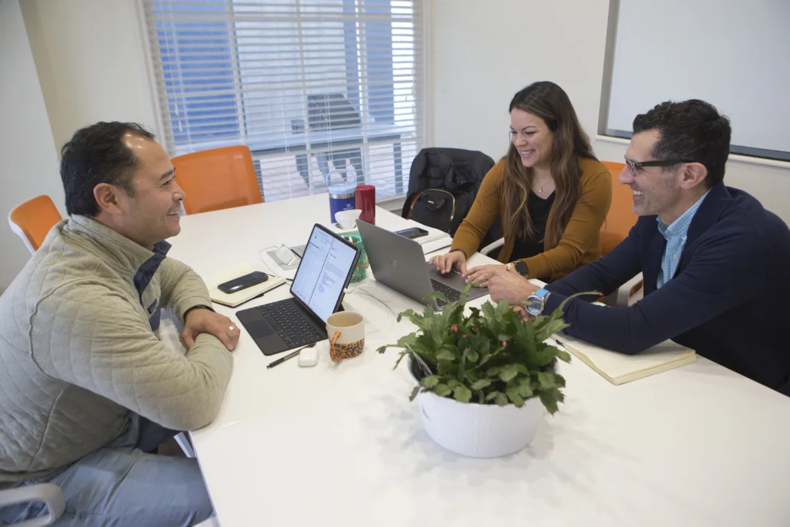 From left, Mark Nato, Stephanie Garcia and Jerry Pullins, all Catholics of the archdiocese, collaborate at the CareStreet office in Overland Park. CareStreet is a senior living placement and advocacy service that offers a variety...