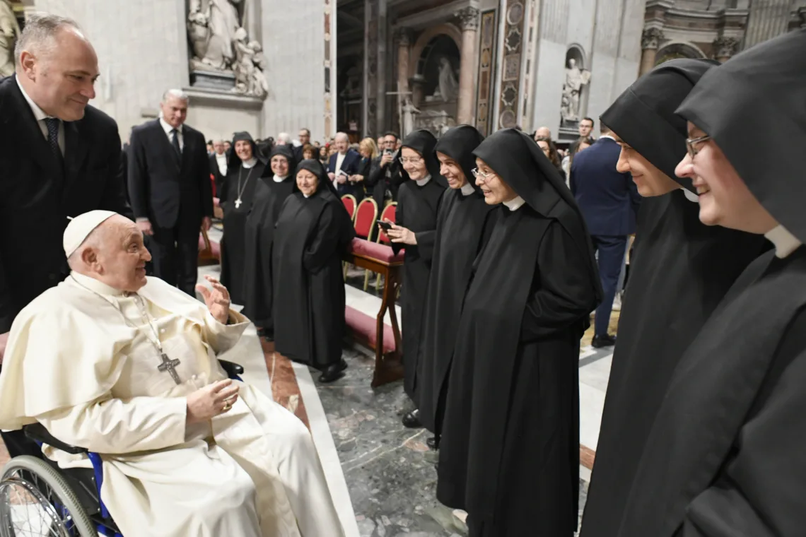 Pope Francis greets Benedictine nuns moving into Vatican monastery