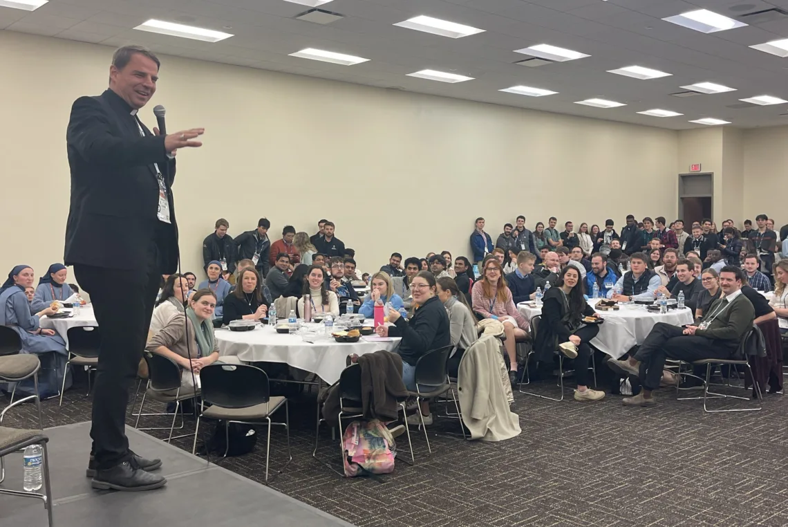 Addressing a room crowded with several hundred university students, Bishop Stefan Oster of Passau, Germany, discussed a wide range of topics with attendees during an open question-and-answer session held during the SEEK24...