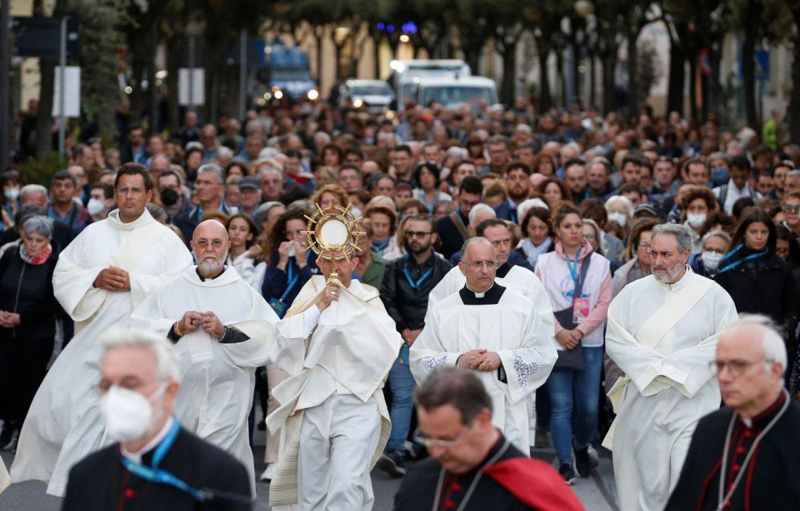 Jesus, present in the Eucharist, inspires compassion, sharing, pope says