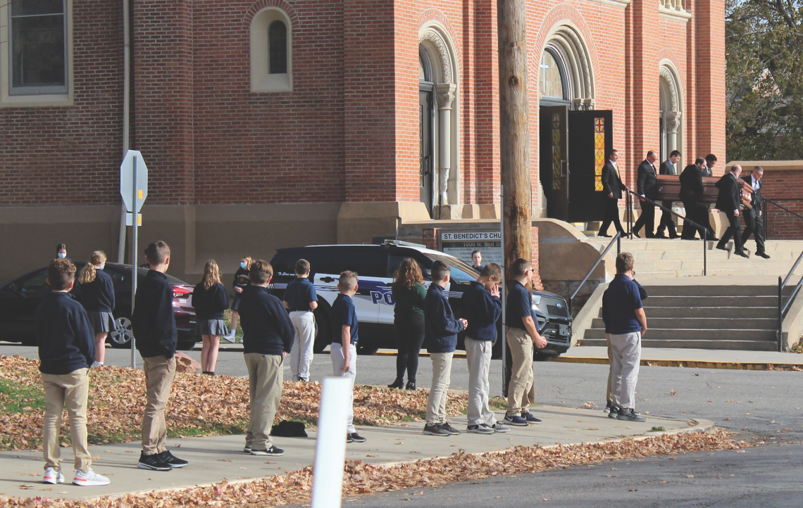 After every funeral at St. Benedict Church in Atchison, whether the deceased has ties to the parish school or not, the students of St. Benedict line Unity and Second streets to pay their respects. PHOTO COURTESY OF MELISSA...