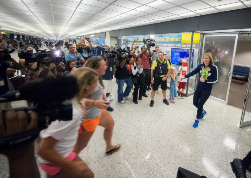 Olympic swimming champion Ledecky returns home to cheering crowd