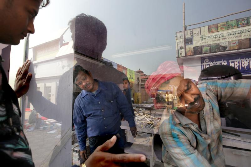 A group of young independent photographers are busy clicking away, taking photos of the "City of Joy."