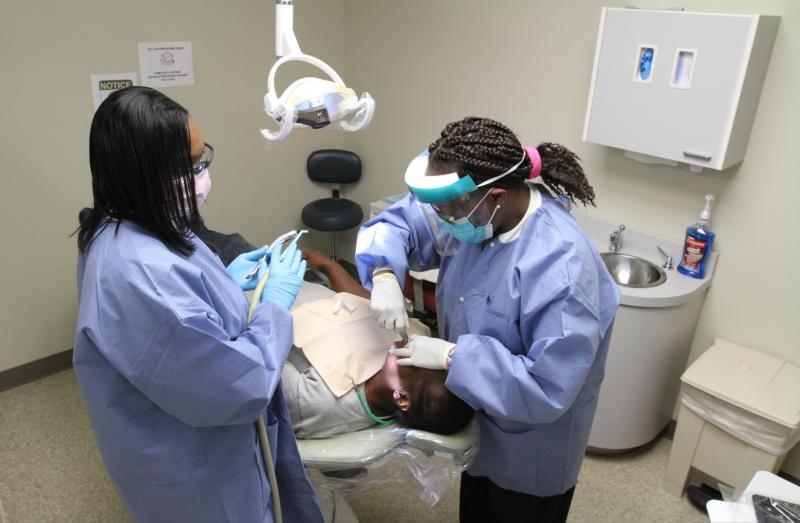 Outside the doors of the Mercy Care clinic, within view of the towers of downtown Atlanta, patients wait, hoping to get a coveted walk-in slot in the dental clinic.