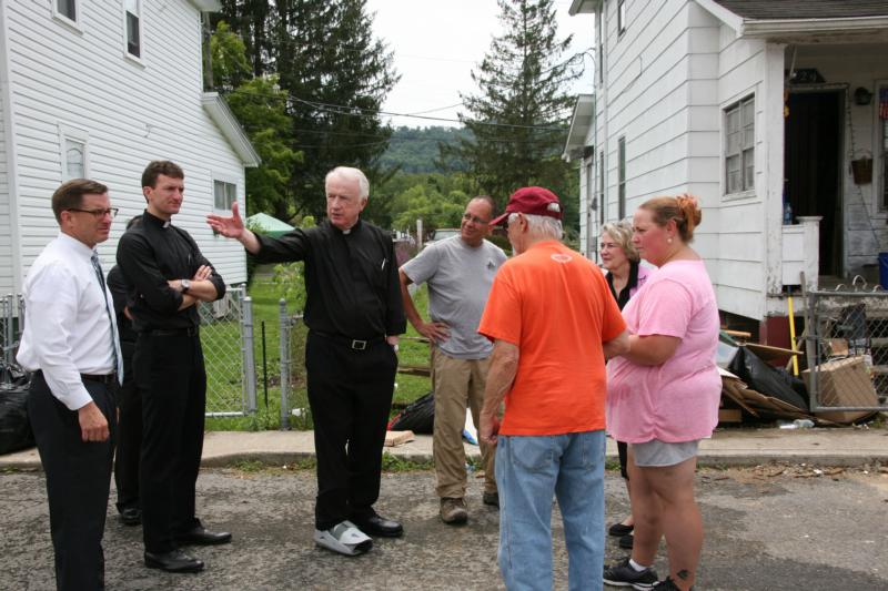 Bishop Michael J. Bransfield of Wheeling-Charleston toured the flood-ravaged town of Rainelle July 25 to see firsthand the damage caused by the severe June 23 floods.