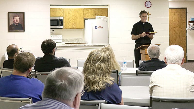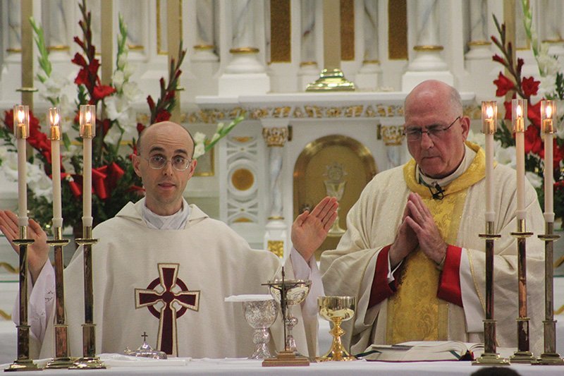 He might not enjoy the renown of Gabriel, but Holy Angels pastor Father Matt Schiffelbein was blowing that horn just the same at the 100th anniversary celebration of his Garnett parish’s founding June 25.