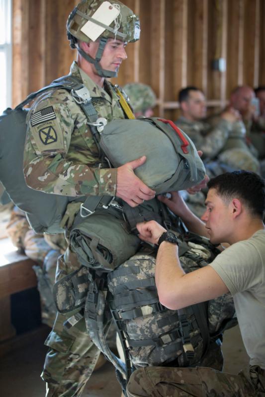 At first glance, it's difficult to distinguish Father Lukasz J. Willenberg as a Catholic priest as he gathers with U.S. Army paratroopers preparing for a training jump at Pope Field near Fayetteville, North Carolina.