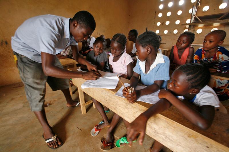 The children of Sierra Leone, victims of a bloody 10-year civil war and more lately of Ebola, need help returning to school, Father Peter Konteh told sponsors of a new U.N. educational initiative.