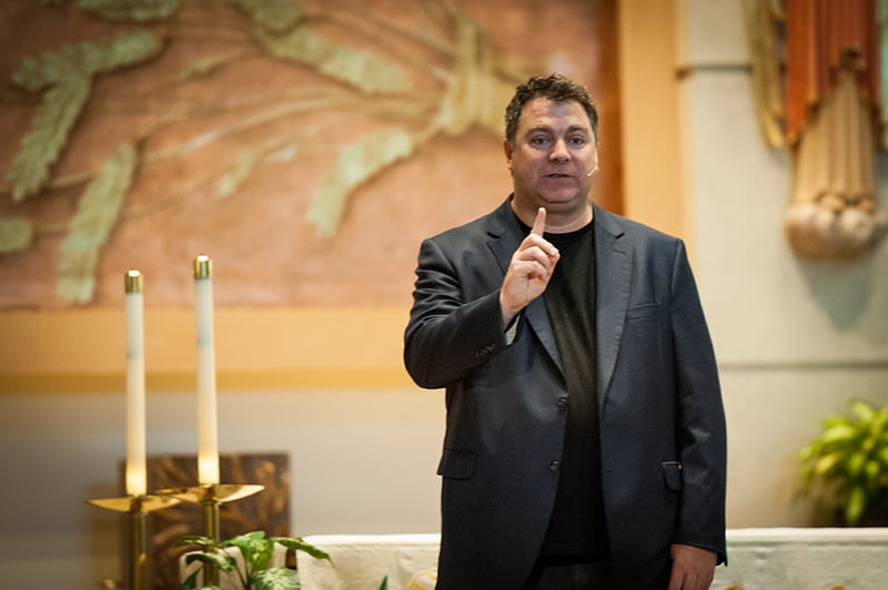 Kelly was welcomed by resounding applause from the packed church, but quickly launched into a discussion about the responsibility of Catholics to live more engaged, purposeful lives.