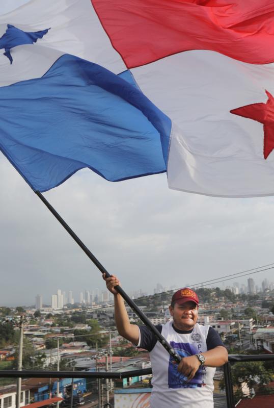 With Panama City as the backdrop, a young man waves the flag of Panama following a prayer vigil for young people in late April at the Church of Christ the Redeemer outside Panama City. Dioceses in Nicaragua and Costa Rica are preparing to receive up to 30,000 young adults as part of the traditional Days in the Dioceses leading to World Youth Day in Panama City Jan. 22-27. Panamanian dioceses also will receive young people. (CNS photo/Bob Roller)