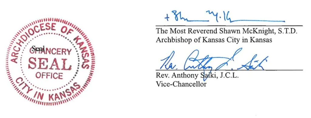 Given at the Chancery in Kansas City, Kansas, on the 17 day of September in the year of Our Lord 2025.