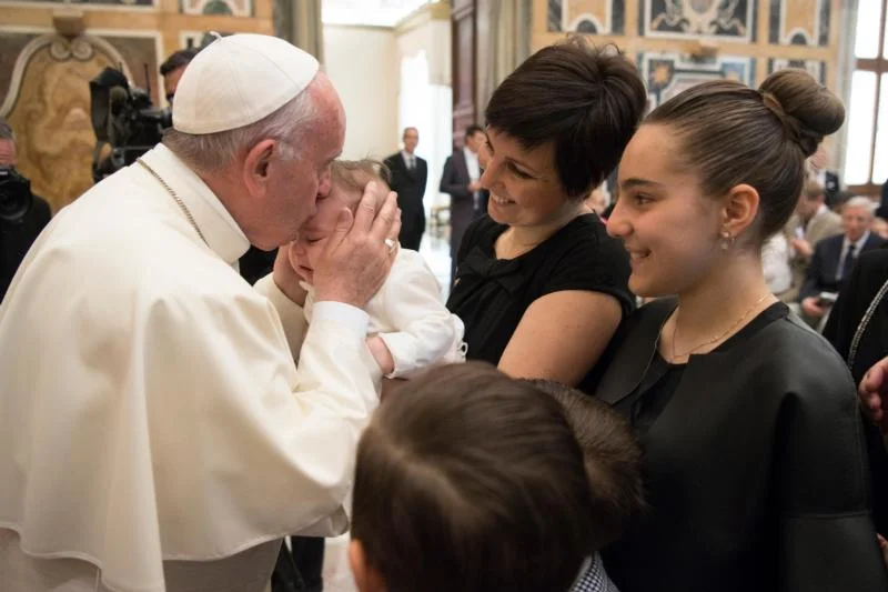 Pope Francis kisses a baby during an audience with representatives from the Federation of Catholic Family Associations in Europe at the Vatican June 1. (CNS photo/L’Osservatore Romano)