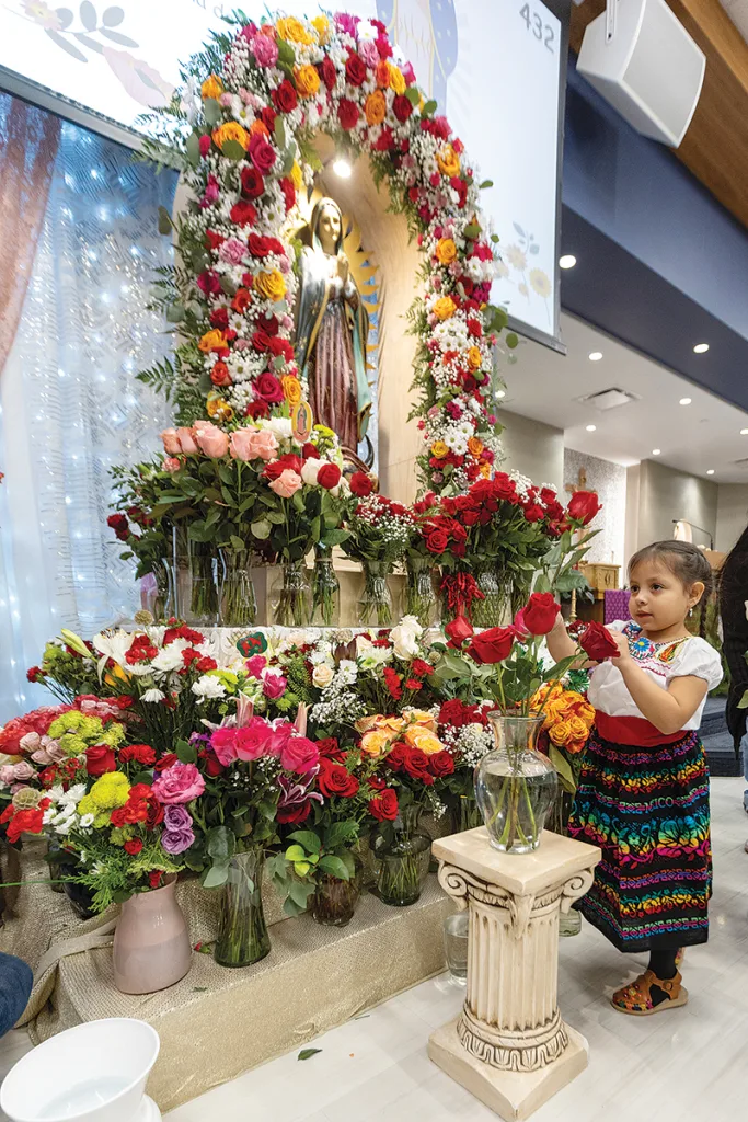 Following the procession, participants gathered for a traditional Our Lady of Guadalupe Mass at the church, complete with colorful costumes, dancing and children placing flowers at the base of Our Lady of Guadalupe to symbolize the miracle of the roses.