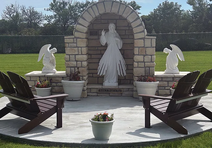 OLATHE — Centrally located in Mt. Calvary Cemetery here, a new shrine to Divine Mercy stands as an inviting place for prayer and as a fitting memorial to deceased members of the Hutchinson family.