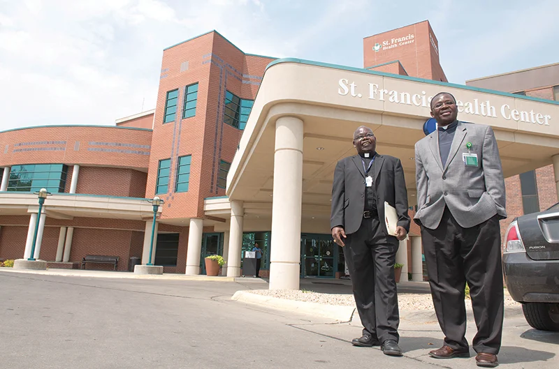 Father Diego Cadri, left, and Father Peter Nwanekezie serve as chaplains at St. Francis Health Center in Topeka, the only Catholic hospital in the archdiocese.