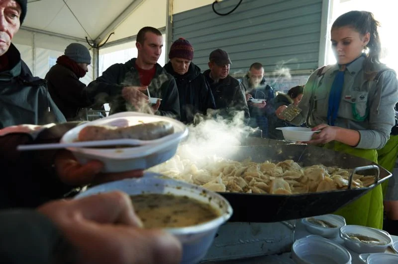 Homeless and the needy receive free meals on Christmas Eve in Gdansk, Poland. Pope Francis urged global business leaders attending the World Economic Forum in Davos, Switzerland, Jan. 20 to act fairly and compassionately toward poor people. (CNS photo/Adam Warzawa, EPA)