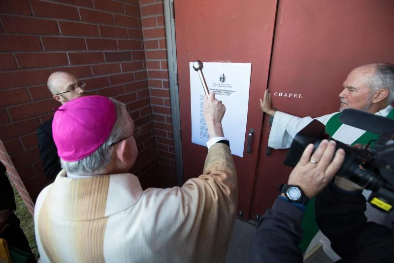 As the archbishop and other visitors walked into the chapel he blessed himself and read the words posted on one of the double doors: