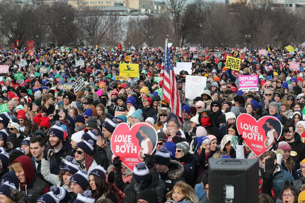 People hold signs during the 52nd annual March for Life rally in Washington Jan. 24, 2025. (OSV News photo/Bob Roller)