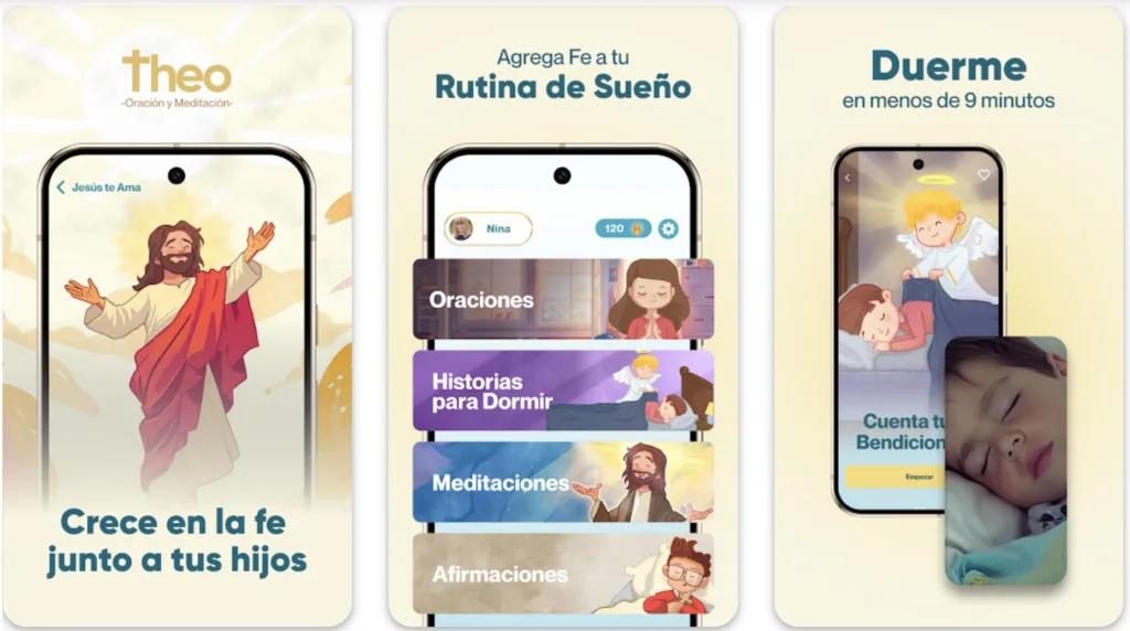 Con los aprendizajes del camino recorrido con StoryBook, Cornejo, Vega y ocho profesionales más emprendieron un nuevo proyecto: Theo App. Una aplicación pensada para la evangelización familiar y enfocada especialmente en que los pequeños se acerquen más a Dios y conozcan, de manera sencilla, la fe católica.