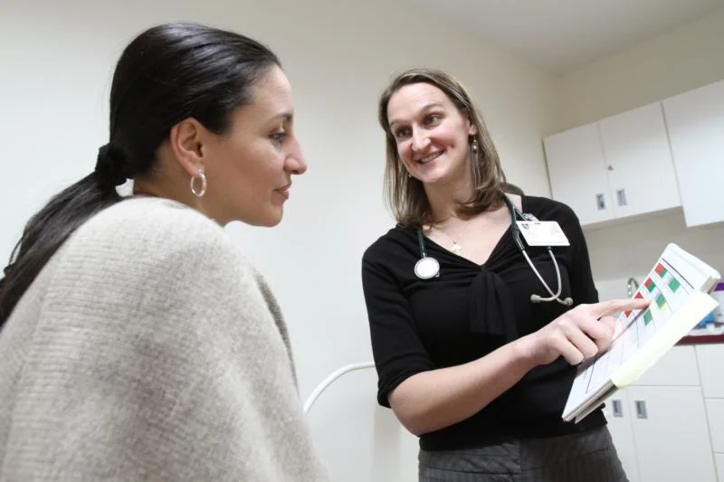 Dr. Anne Nolte, right, a family physician with the National Gianna Center for Women’s Health and Fertility in New York, is pictured with a patient in 2009. A pair of Catholic physicians argue that changes in the way health care is paid for and stronger relationships between doctors and their patients will do more to improve people’s health and uphold the sanctity of life than bureaucratic government-run programs and expensive insurance policies. (CNS photo/Gregory A. Shemitz) See WASHINGTON-LETTER-HEALTH-CARE Nov. 3, 2016.
