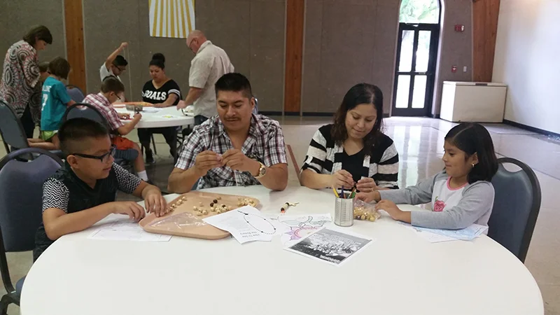 After they finished making the spiritual bouquets, they watched a video about Our Lady of Fatima. After the video, each child was given a bag of beads to make a rosary. When they had done so, the group prayed one decade. The children were able to take their rosaries home when the event was over.