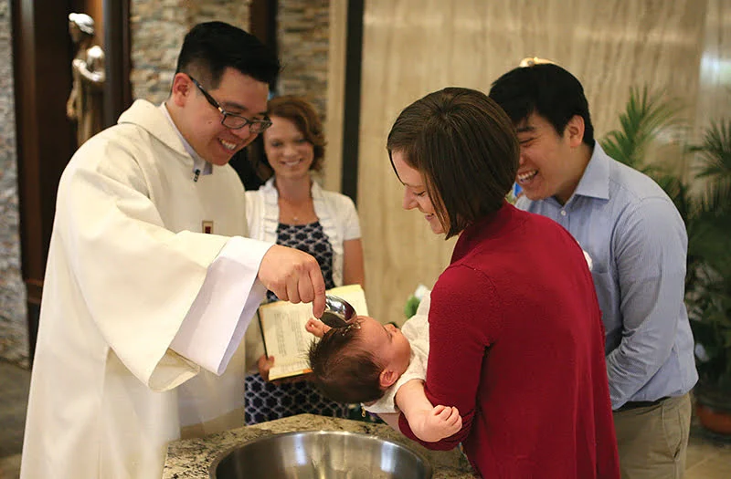 Deacon Quoc-Viet Minh Nguyen baptizes his niece the day after his ordination to the transitional diaconate. He will be ordained to the priesthood on June 30 at Church of the Nativity in Leawood.
