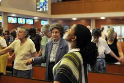 Members of three Catholic parishes, a Jewish congregation, and four Protestant churches gathered to lift up the issues of crime and safety to God during an interfaith prayer service on June 21 at Christ the King Parish in Kansas City, Kan.