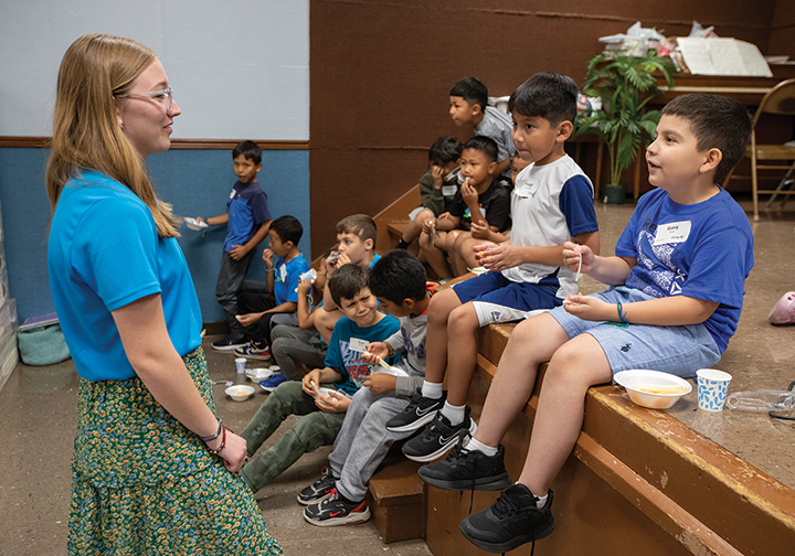 “I think this is our best summer catechesis program,” Father Haganey said during a recent visit to a session at Christ the King Parish in Kansas City, Kansas. “It does a good job of mixing fun and entertainment for the kids, but it also has a very robust teaching aspect to it with the rotation of different topics taught each year.”