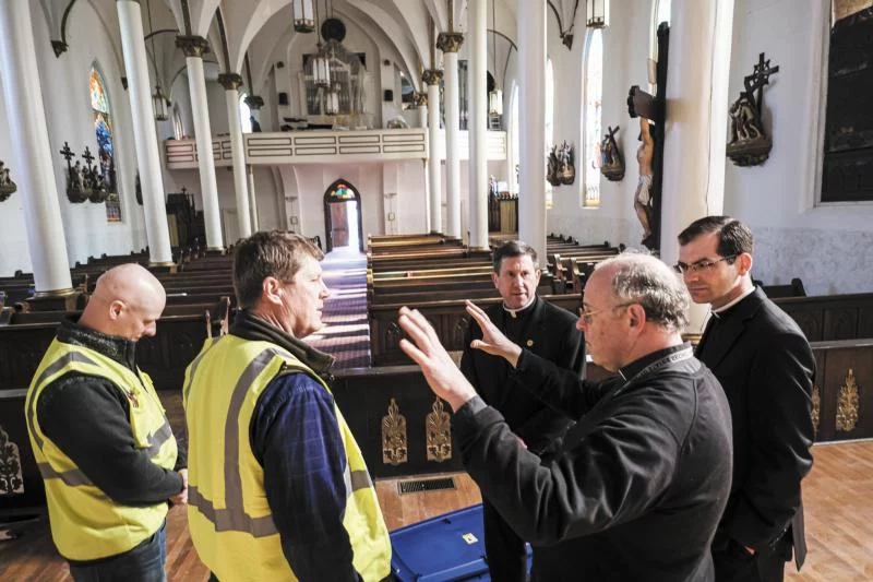 The significant structural damage that has left the Church of the Assumption unusable until repairs are made has led to some changes in Mass schedules. Daily Mass will be celebrated in the old school building next door to the church, and Sunday Mass will be celebrated at the Monroe Street United Methodist Church across the street from Assumption.