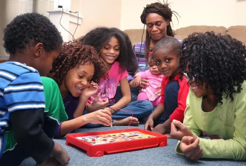 Quinn Washington’s family plays a board game Feb. 16 in their new home in Lorain, Ohio. The family lives at what is considered the extreme poverty level. After Washington lost her job in 2014, they faced months of surviving on virtually no income and having to sleep in the family vehicle, shelters and later a motel. (CNS photo/William Rieter)