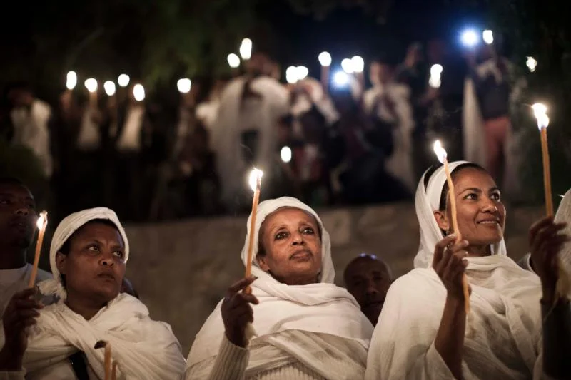 Ethiopian Orthodox Christians light candles and pray during the Holy Fire ceremony in Jerusalem’s Church of the Holy Sepulcher in this April 19, 2014, file photo. (CNS photo/Abir Sultan, EPA)