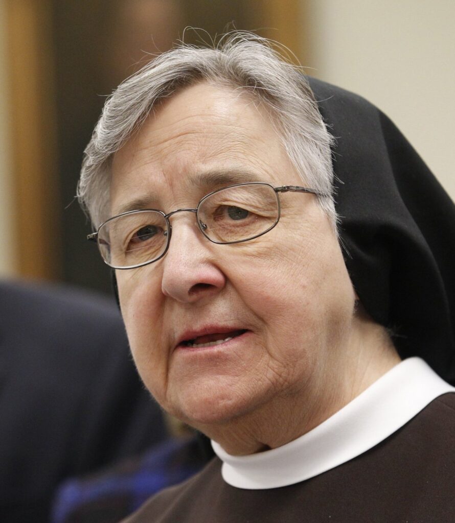 Franciscan Sister Jane Marie Klein, who then chaired the board of Franciscan Alliance, speaks during a March 5, 2013, news conference on Capitol Hill in Washington. (CNS photo/OSV News, Bob Roller)