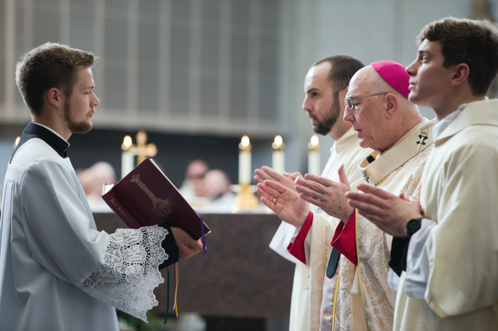 Camp Tekakwitha and a Fellowship of Catholic University Students (FOCUS) conference encouraged him to consider discerning the priesthood more deeply, as did participation in Prayer and Action. He was also involved with the St. Lawrence Catholic Campus Center, where he served Mass.