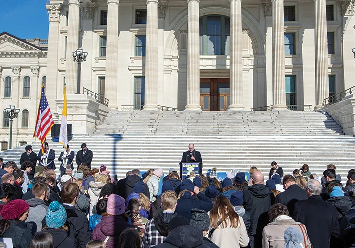 After Mass, participants marched to the Kansas State Capitol for a rally sponsored by Kansans for Life. Archbishop McKnight offered the closing prayer, asking God to “transform the hearts and minds of all elected leaders” and to strengthen those gathered.