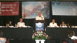 In his concluding remarks, Dechant discussed how the late Blessed John Paul II began his pontificate with the now-famous words: “Do not be afraid; open wide the doors to Christ.” He told the Knights to not be afraid, but to confront any threats to religious liberty, first and foremost, through prayer.