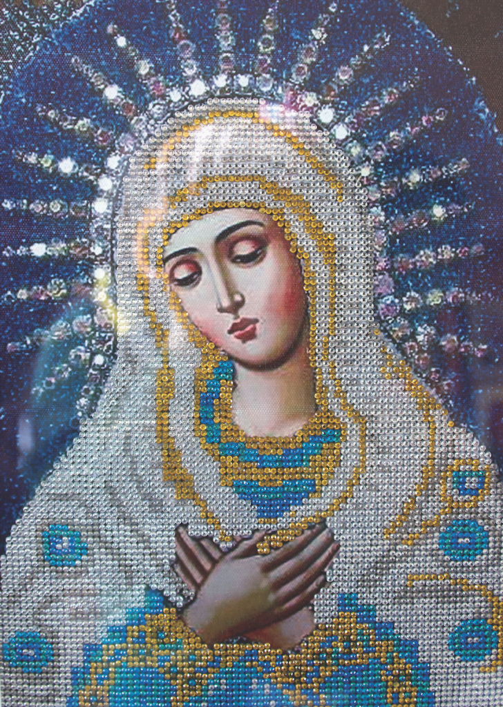 Schmidt donated a diamond painting of Mary and the infant Jesus to the parish. It hangs in a religious education room, where pastoral council and finance council meetings take place.
