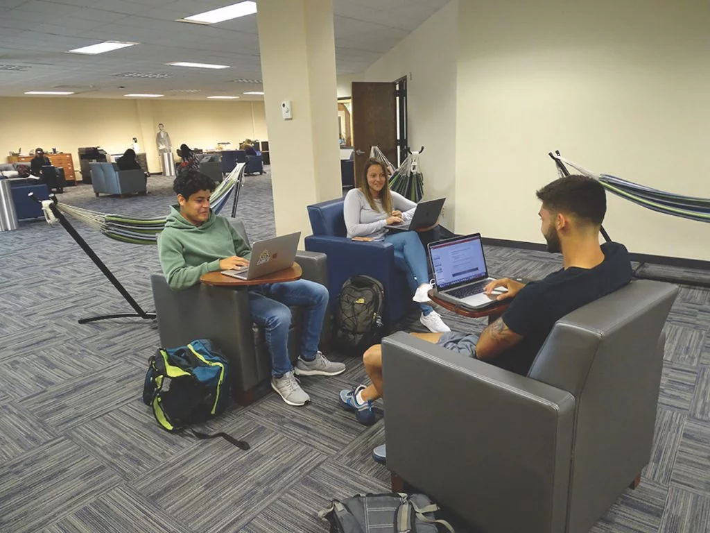 To achieve this goal, the learning commons includes a balance of study areas — including seven study pods called “think tanks” and an active learning center where classes can be conducted — and relaxation areas, including a board game collection, various types of seating and hammocks.