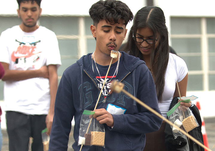 Participants were given a roasting stick and a bag with essential ingredients to make s’mores.
