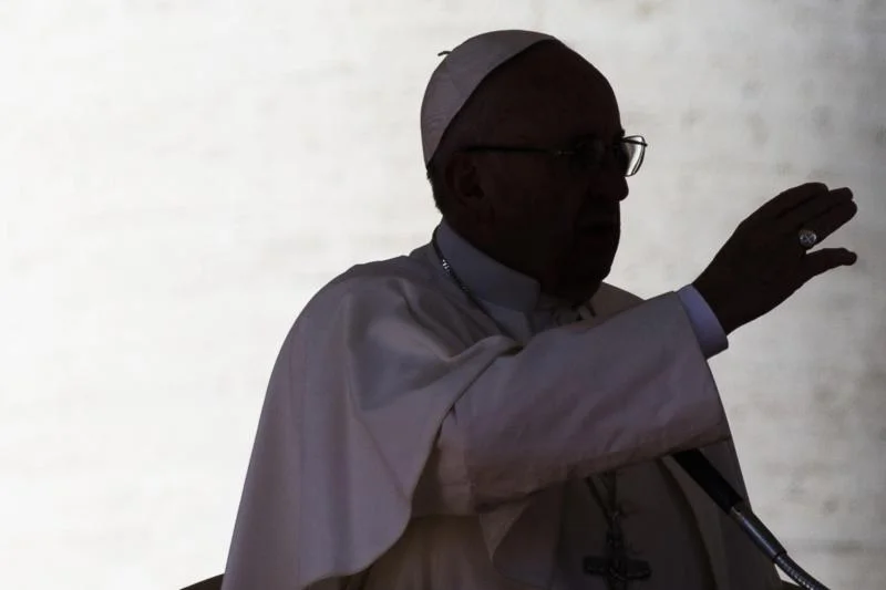 A silhouette of Pope Francis is seen in St. Peter’s Square at the Vatican Feb. 20. For a Christian, talk is cheap; the faith requires concretely doing God’s will and serving the least as well as those around you, Pope Francis said at his morning Mass Feb. 23.(CNS photo/Angelo Carconi, EPA)