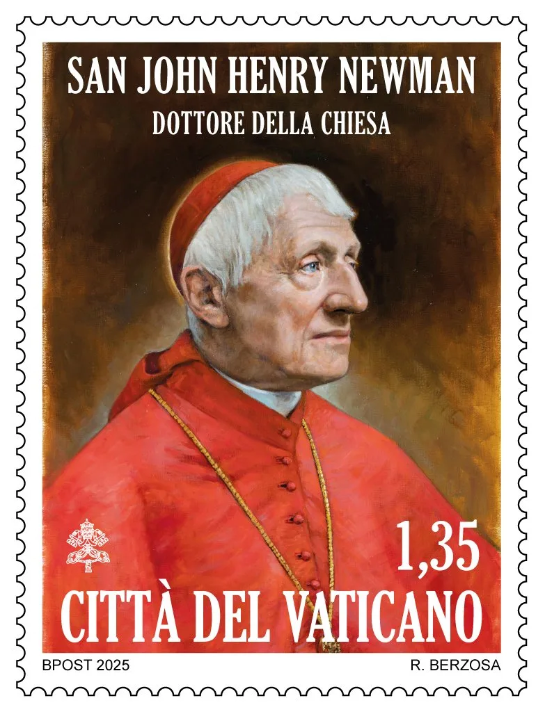 The Vatican celebrates the proclamation of St. John Henry Newman as a “doctor of the church” with a 1.35-euro postage stamp. (CNS photo/courtesy of the Vatican Philatelic and Numismatic Office)