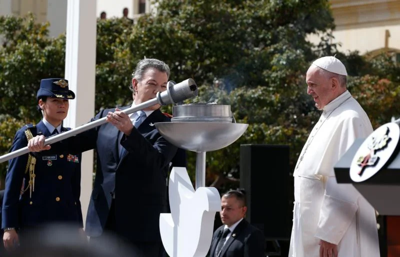 Santos, who has promoted the peace accord in the face of stiff opposition, called the pope’s visit a “push” to take the first steps toward peace and reconciliation.