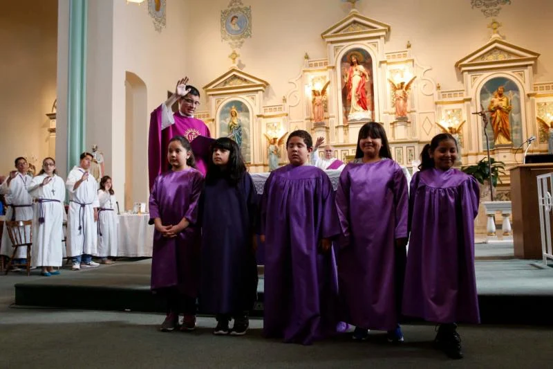 A blessing is given to child catechumens during Mass at Sacred Heart Parish in El Paso, Texas, Feb. 14. Those to receive sacraments of Christian initiation at Easter made their final preparations for joining the Catholic Church during Lent. (CNS photo/Nancy Wiechec)