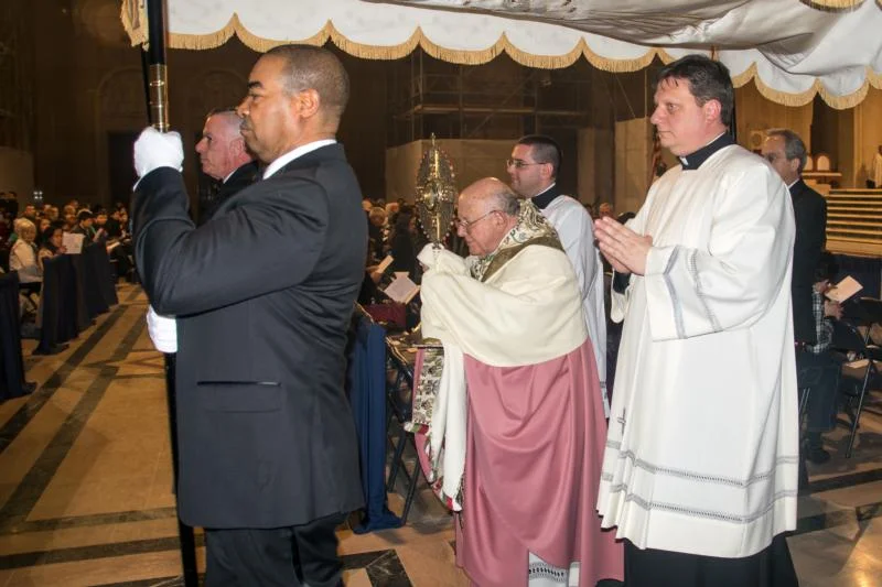 Bishop Paul S. Loverde of Arlington, Va., leads a eucharistic procession March 5 at the Basilica of the National Shrine of the Immaculate Conception in Washington. (CNS photo/Michael F. Flach, Catholic Herald)