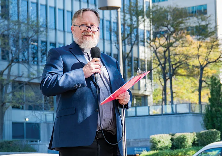 Schlake recounted this event to some 70 people gathered at Washington Square Park for a Rosary for Immigrants on Oct. 22 across the street from the Immigration Court — the same building where that event took place.